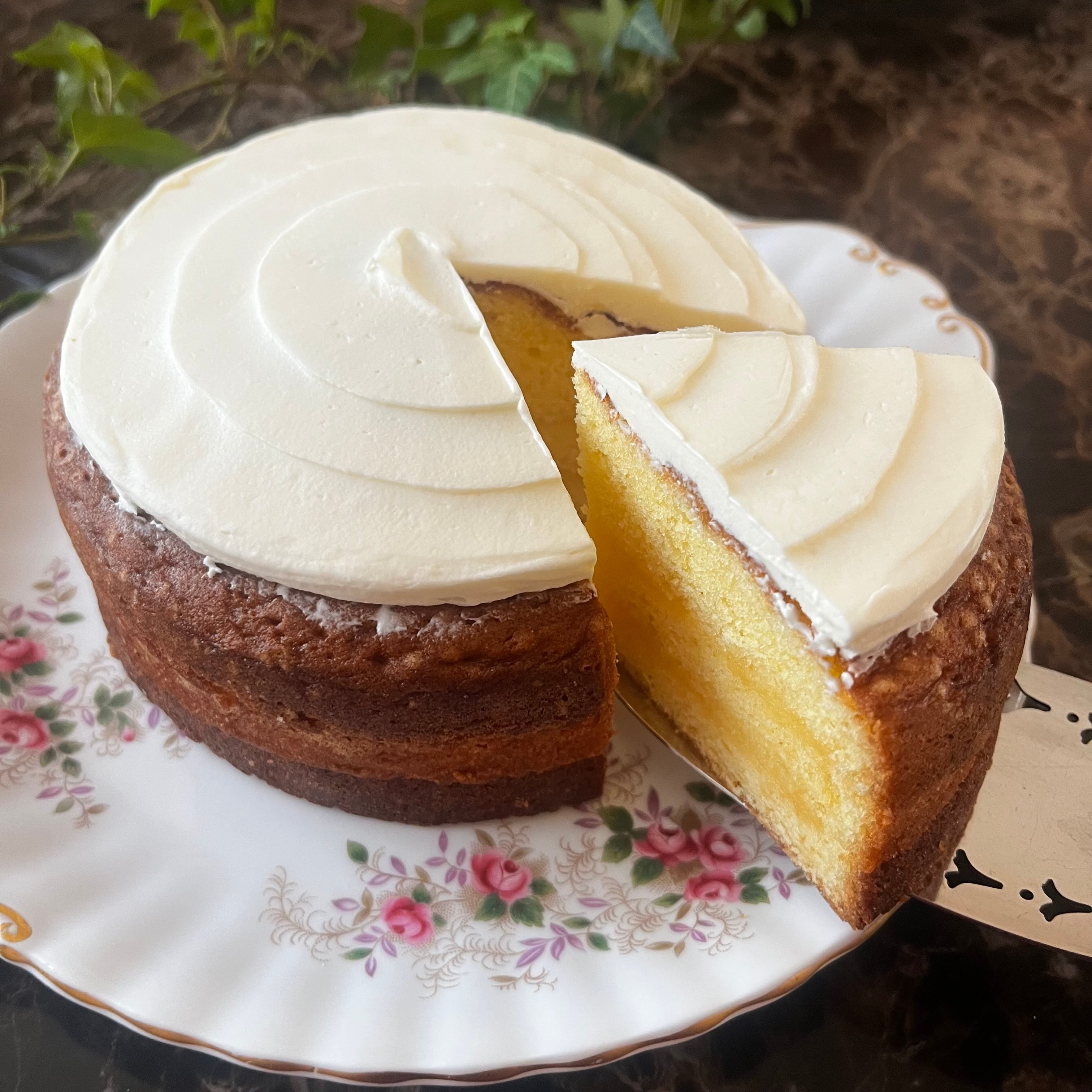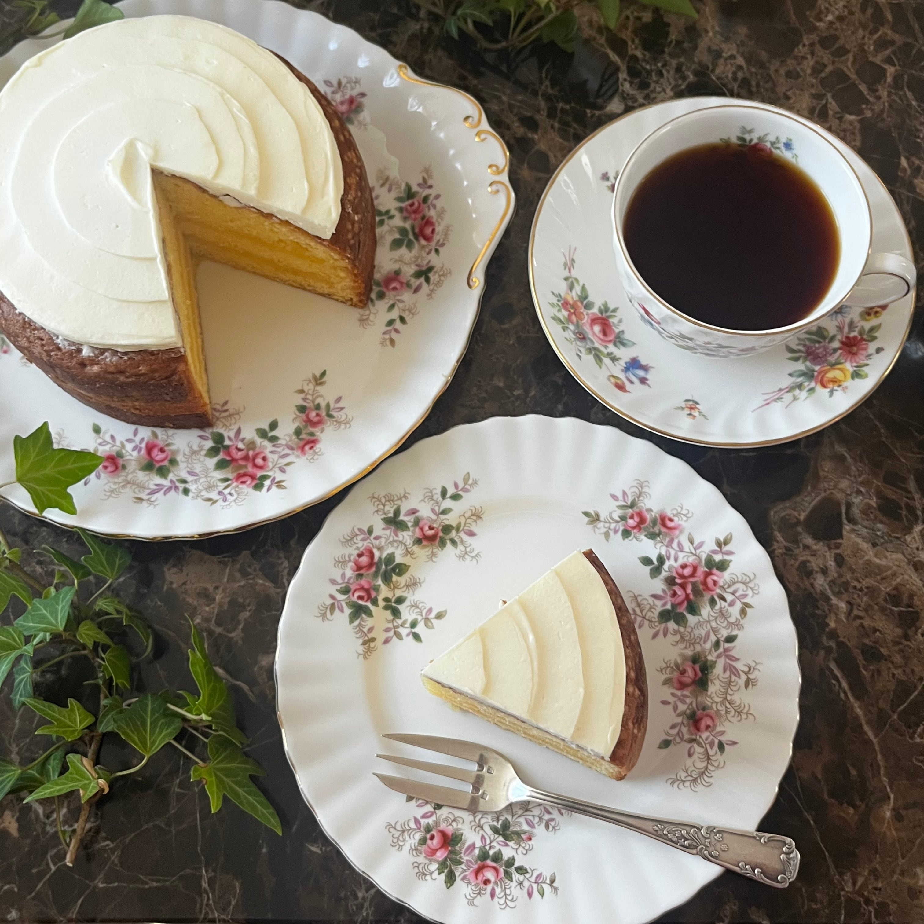 焼き立てのバターケーキに、エルダーフラワーシロップをたっぷり染み込ませ、