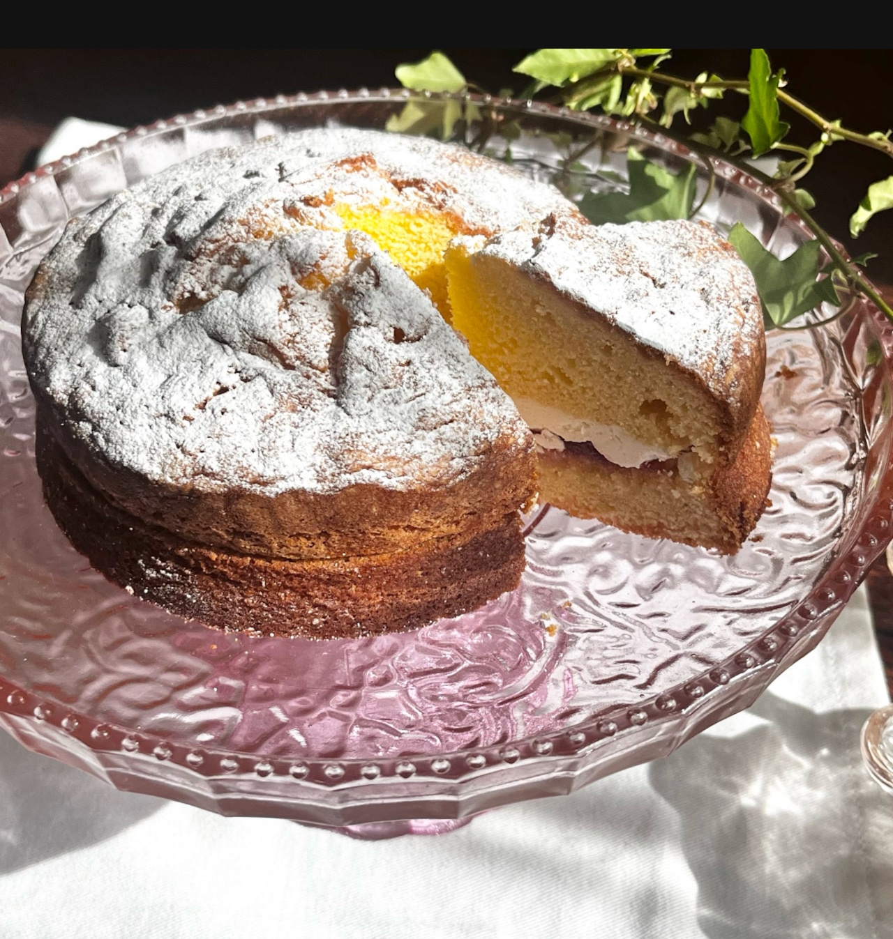 珍しいピンクのガラス製ケーキスタンド。