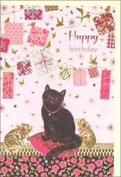 グリーティングカード 誕生日/バースデー 「猫と小鳥」