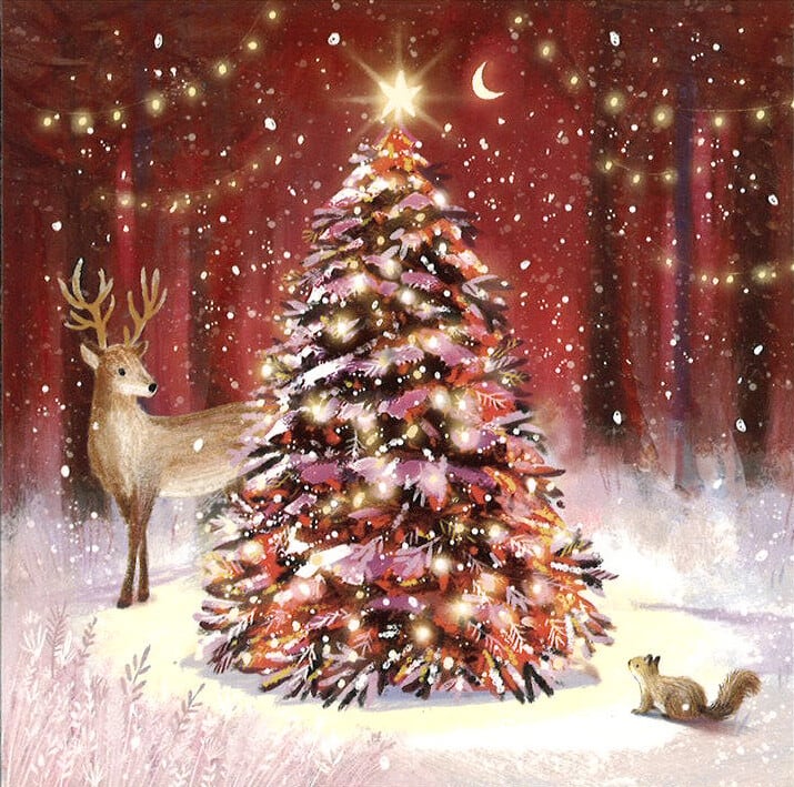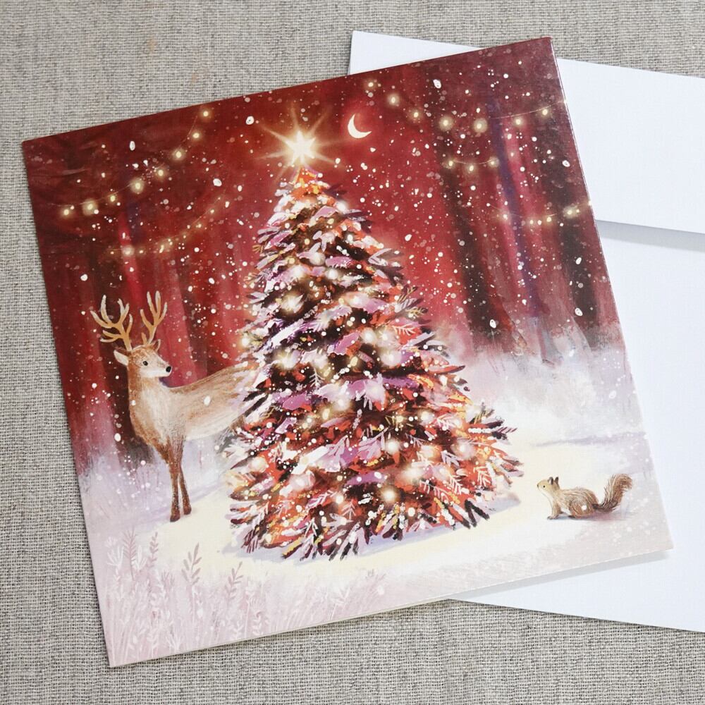 グリーティングカード クリスマス「ツリーに集まるシカたち」 封筒付き イラスト