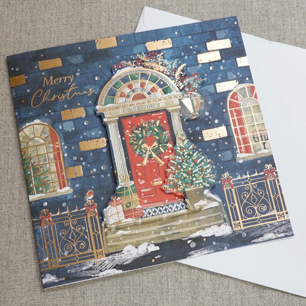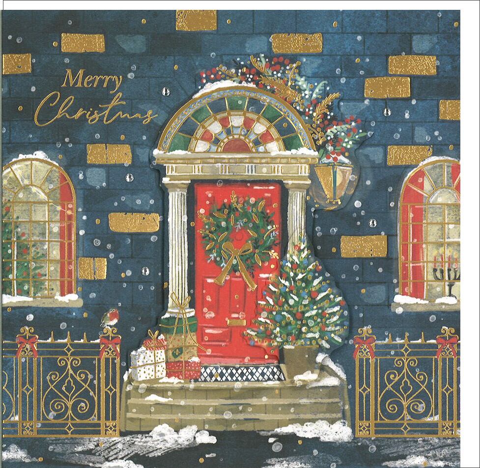 グリーティングカード クリスマス「クリスマスの玄関」 封筒付き イラスト