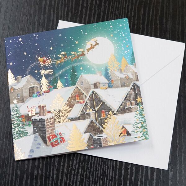 グリーティングカード クリスマス「プレゼントを運ぶサンタ」 封筒付き イラスト 2025新作