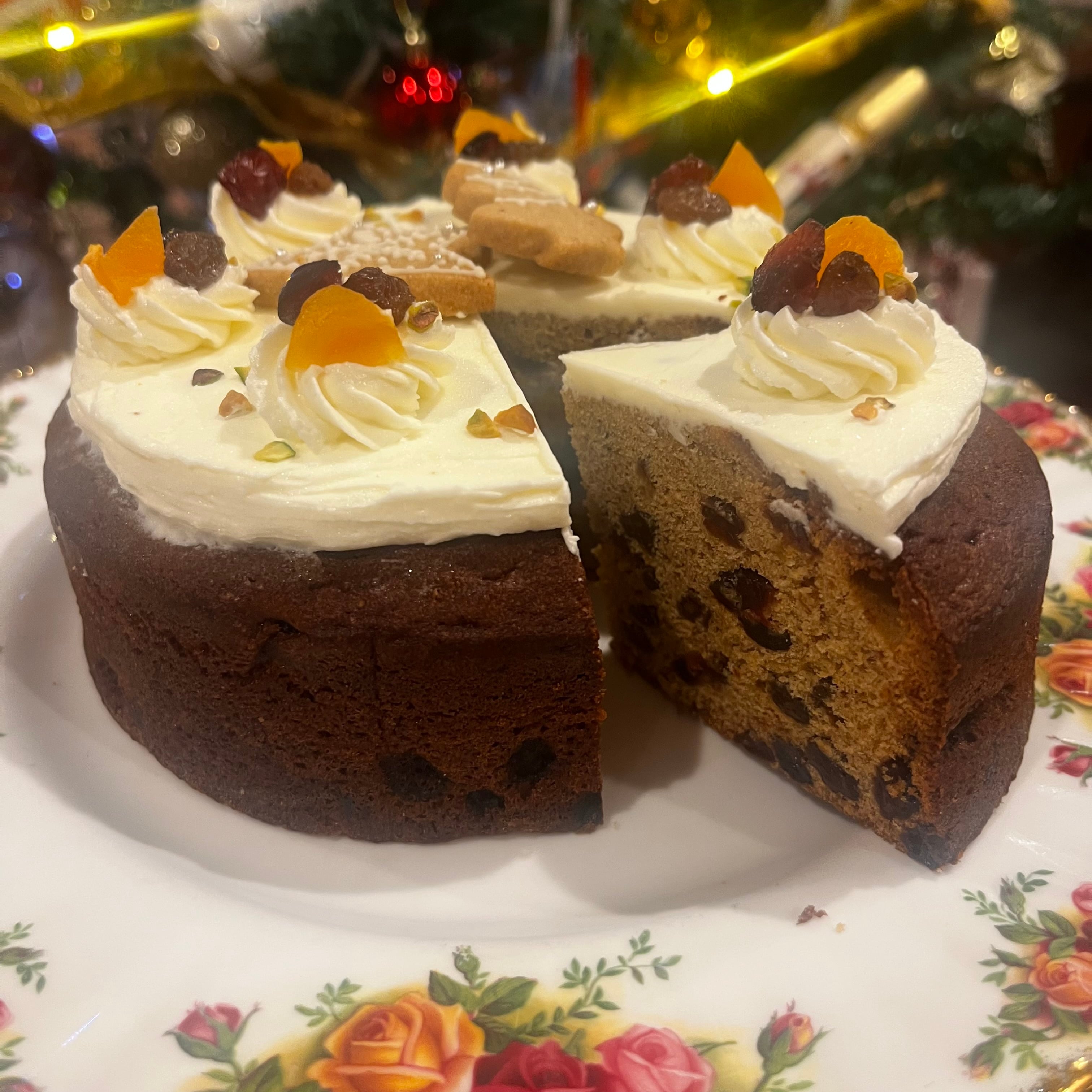 原材料:ドライフルーツ(レーズ、クランベリー、アプリコット)、バター、砂糖、卵、小麦粉、糖蜜、洋酒、ミックススパイス、ピスタチオ/ベーキングパウダー