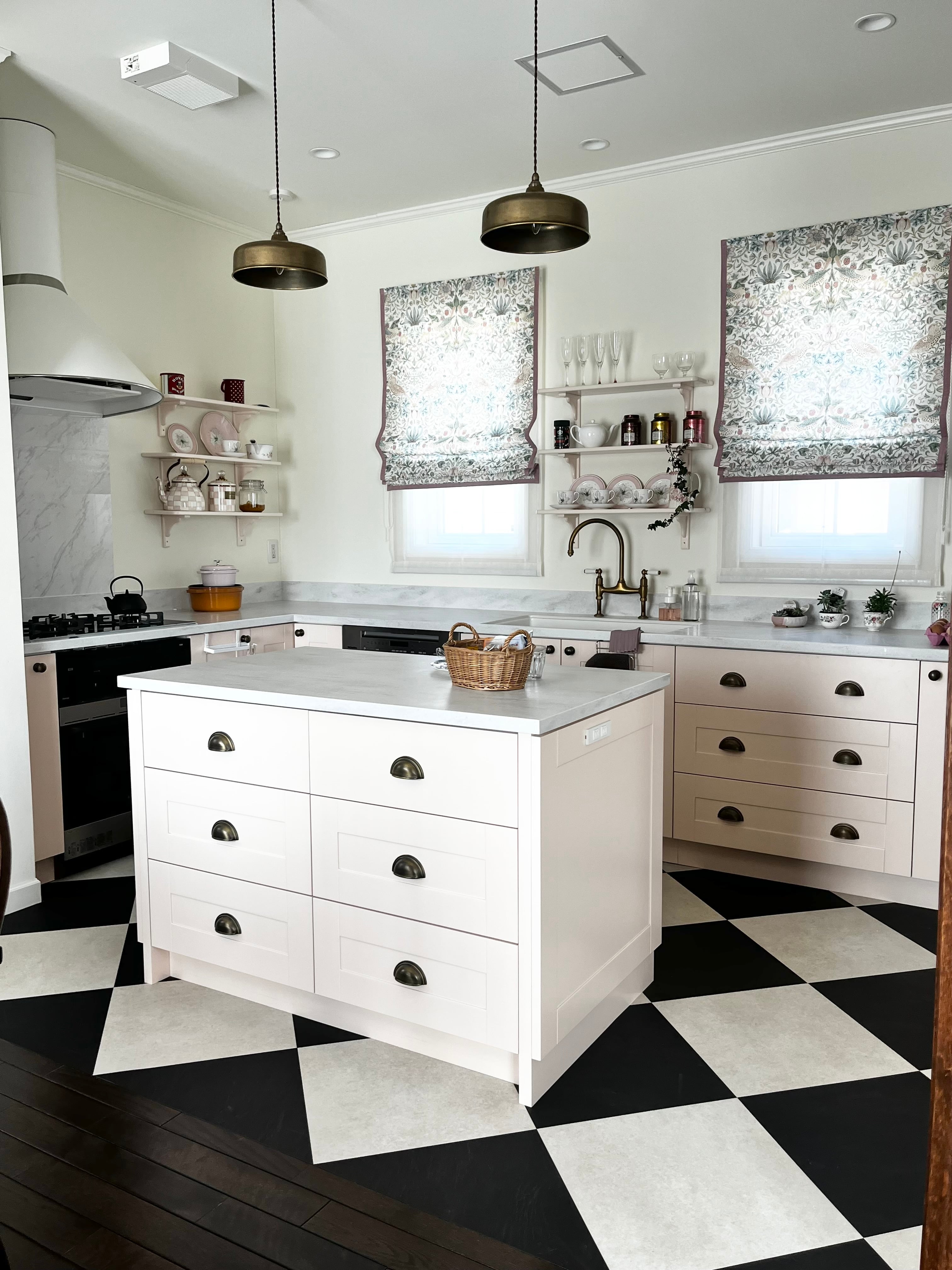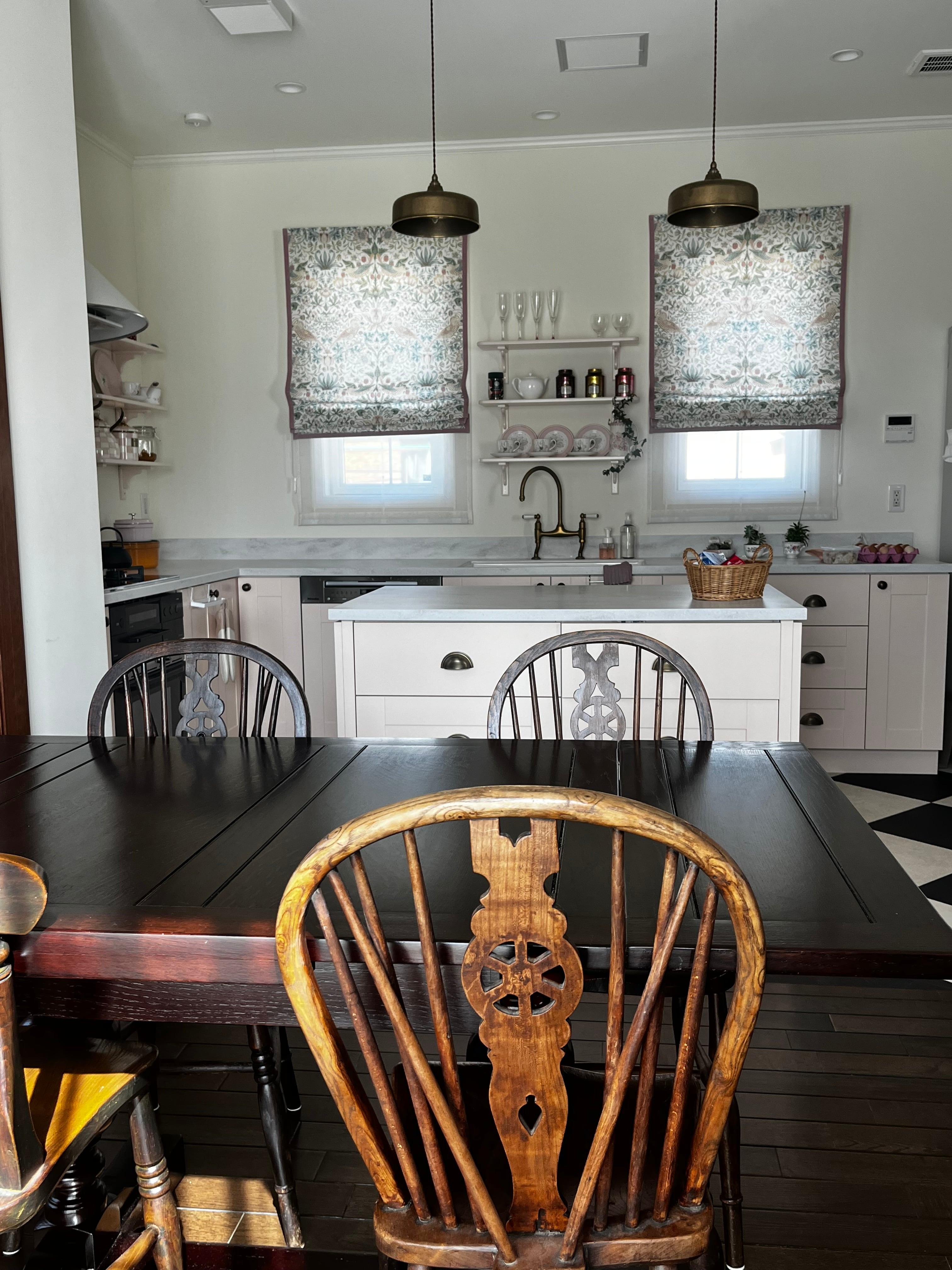 アンティーク家具に囲まれたキッチンで、
