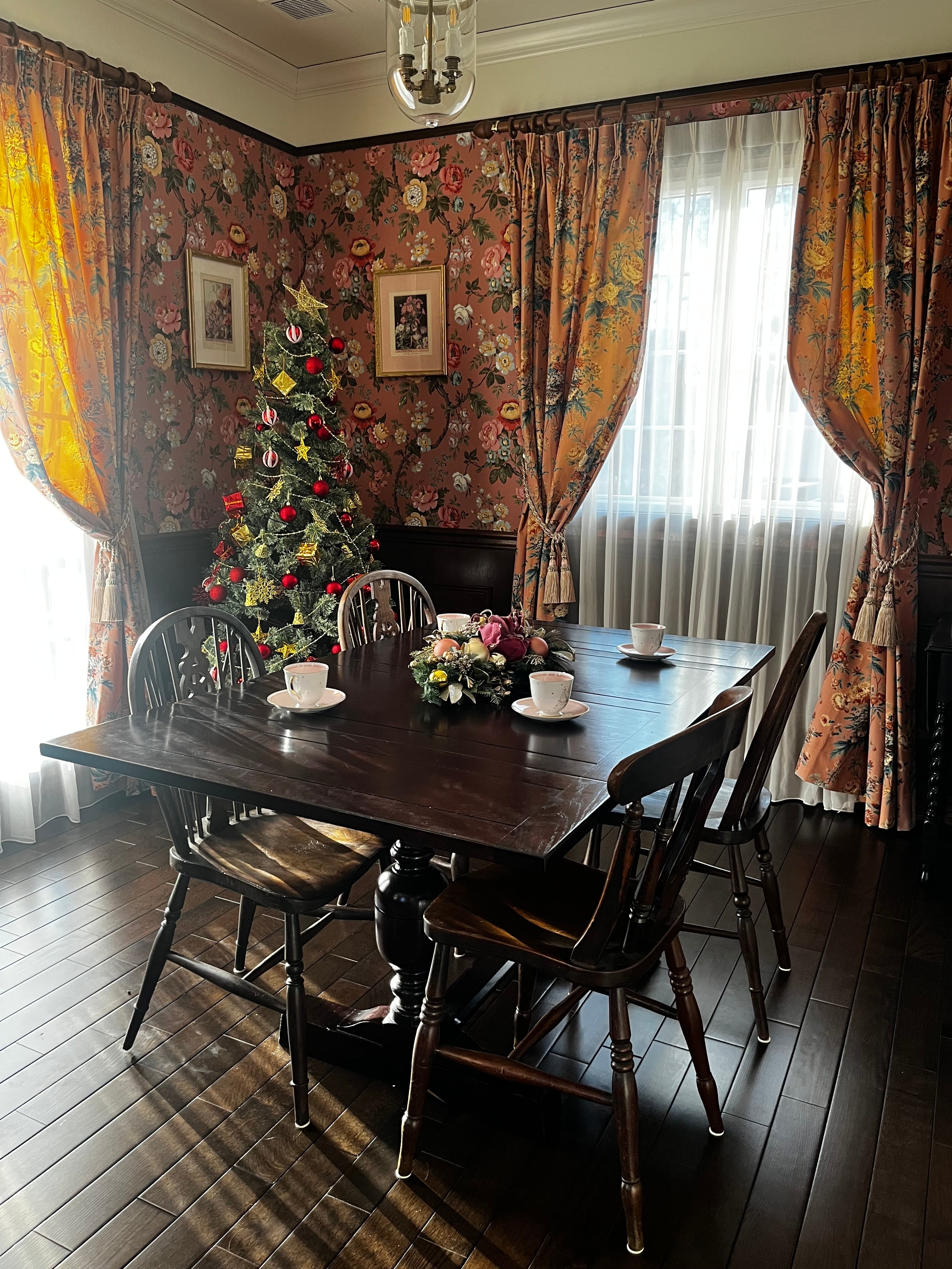 河口湖の静かな英国住宅の空間で、
