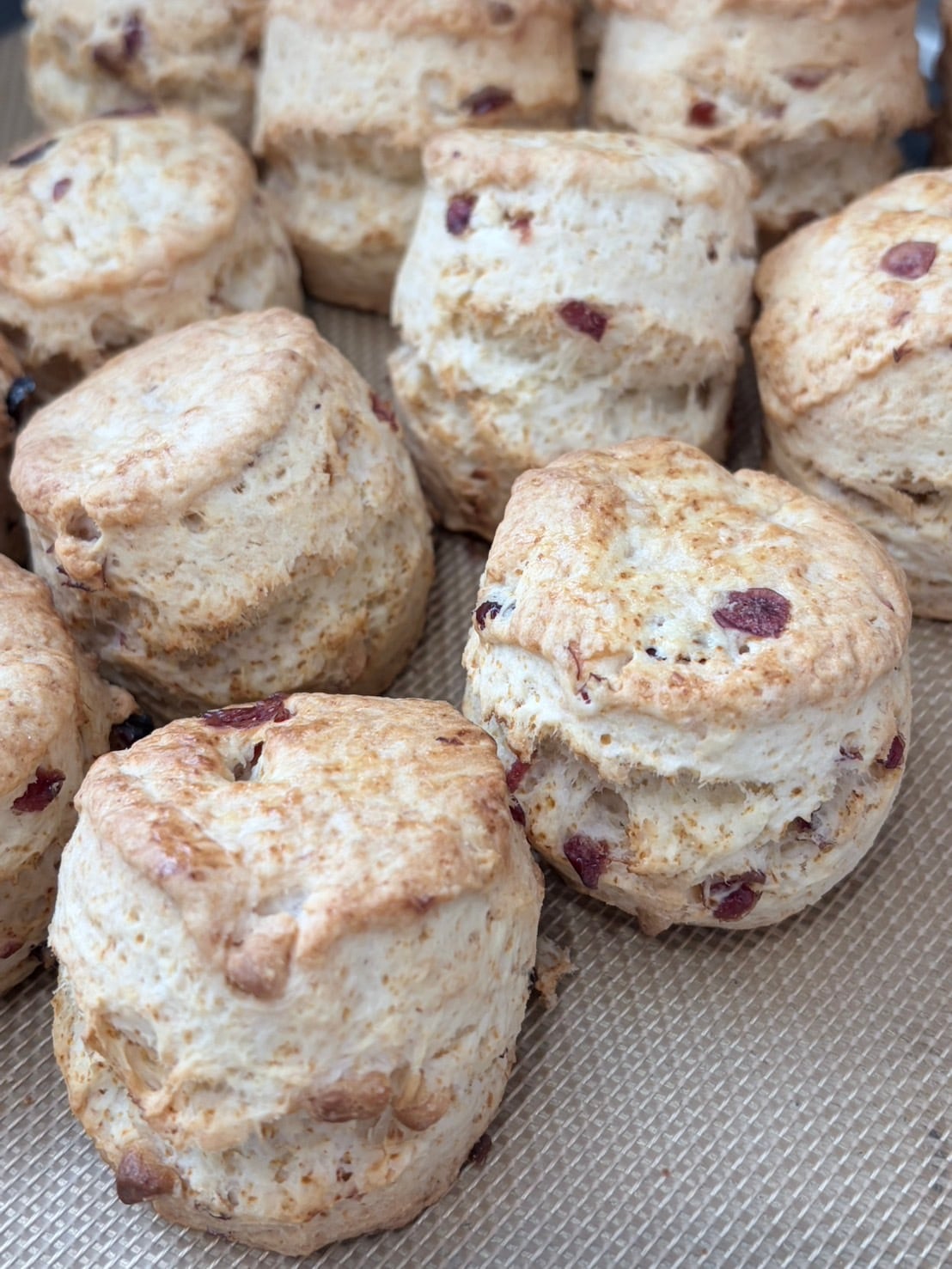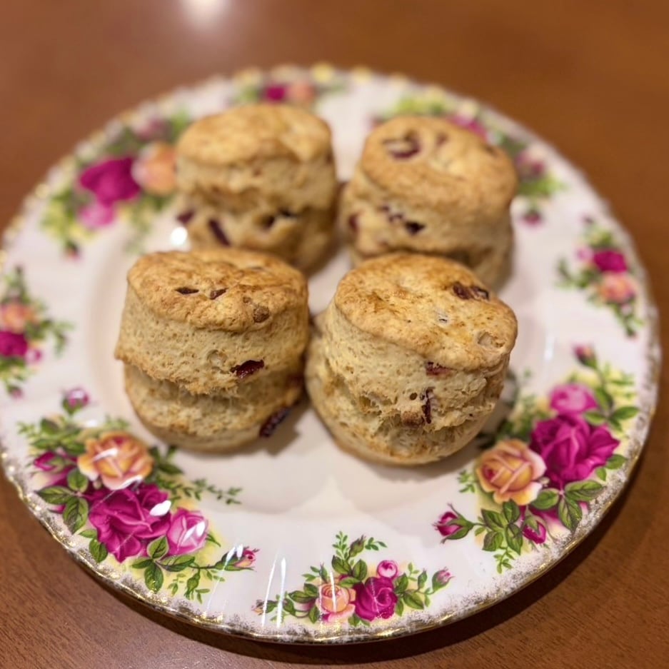 ドライクランベリーとホワイトチョコチップ入りのスコーン。