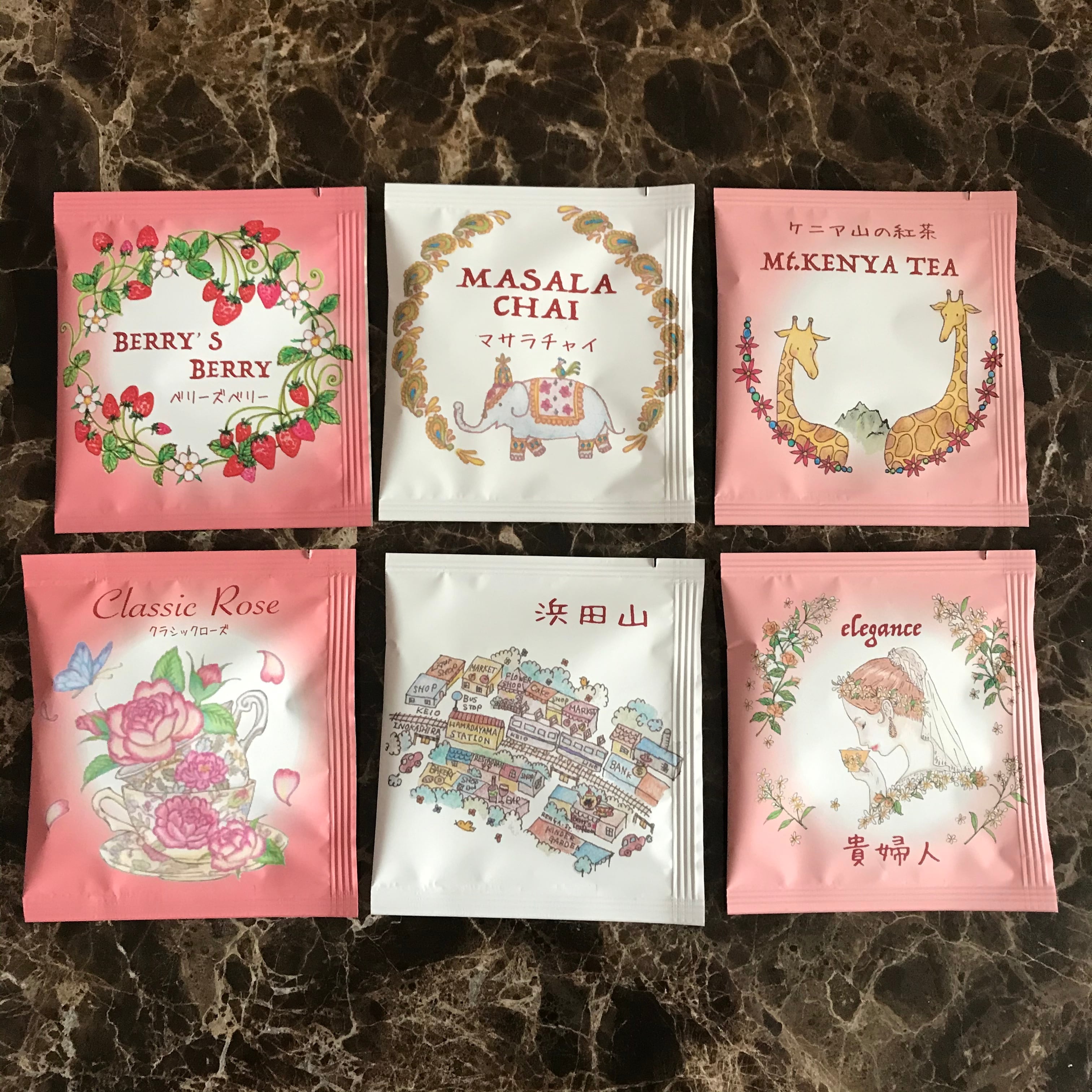 上記の、全6種類のティーバッグ(各1個入)のセットです。
