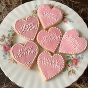 thank you、またはhappy birthdayの文字入りアイシングクッキー。